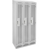 • Clean Line Lockers, Bank of 3, 36" x 18" x 82", Steel, Grey, Rivet (Assembled), Perforated Auto-Cam